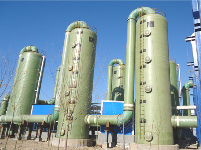 玻璃钢吸收塔采用阻燃性乙烯基不饱合树酯为基体,以无碱无捻玻璃纤维为增强材料,通过数道生产工艺制作而成。外部采用耐老化阻燃型聚酯树脂;外部采用耐老化阻燃型聚酯树脂,是园形重叠式分段组装结构形式。本公司生的玻璃钢吸收塔具有强度高,结构简单,制作方便,占地面积小,净化效率高等优点,达到了国家标准,该塔是一种新型的净化装置,它采用玻璃钢为主要材料。